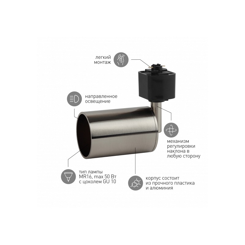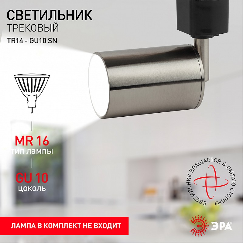 TR14-GU10 SN Трековый светильник однофазный ЭРА TR14-GU10 SN под лампу MR16 сатин-никель