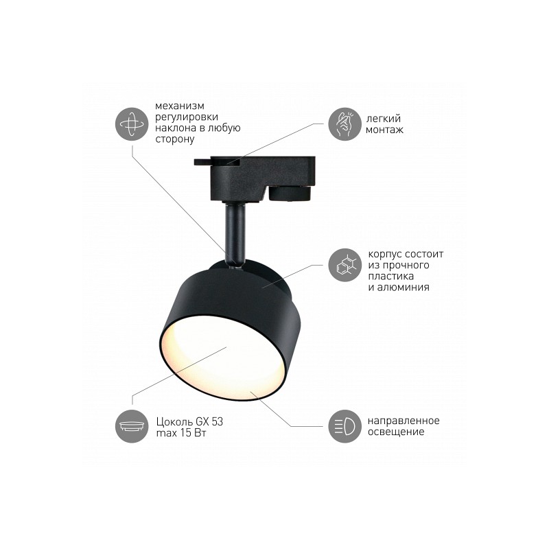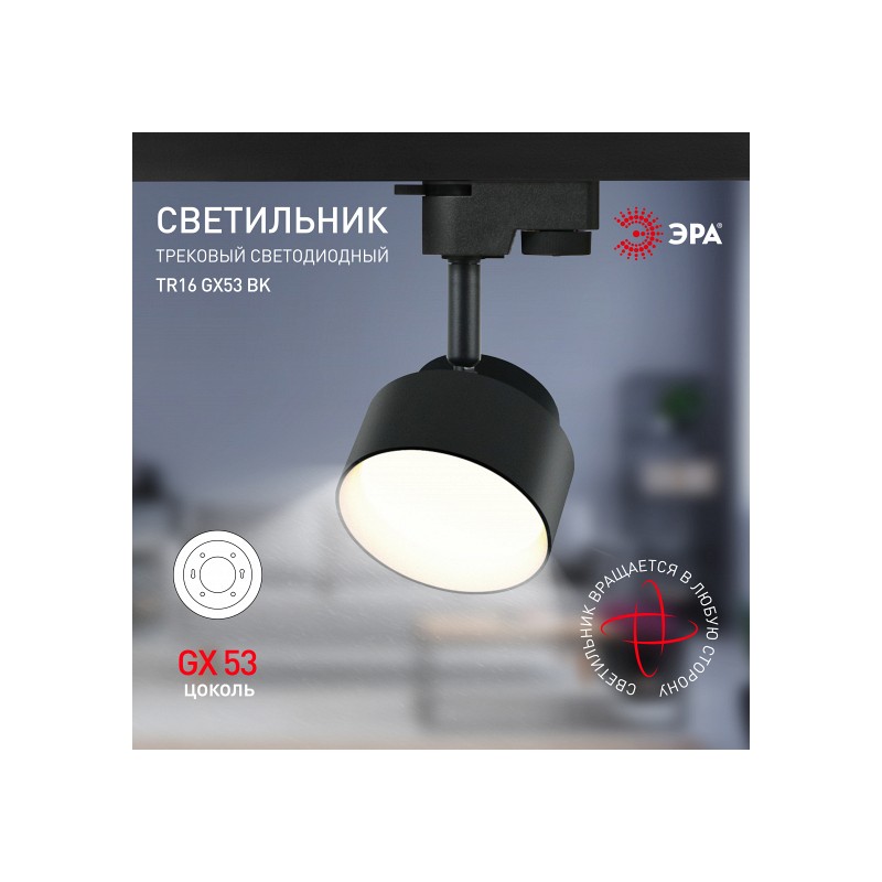 TR16 GX53 BK Трековый светильник однофазный ЭРА TR16 GX53 BK под лампу черный