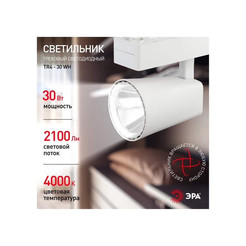 <p>Трековый светильник TR4 - 30 WH позволит расставить световые акценты в любом помещении. Он имеет поворотный плафон, благодаря чему можно менять направление светового потока в любую сторону. Срок службы светодиодного светильника составляет 30000 часов. Он отлично подойдет для создания зонированного пространства. Направленный свет позволит выделить конкретные зоны в помещении, создать особую атмосферу. Трековые светильники легко монтируются, подстраиваются под дизайнерские особенности помещения, позволяют при необходимости полностью менять восприятие помещения. Трековые светильники компании Эра выдающийся акцент в любом пространстве.</p>