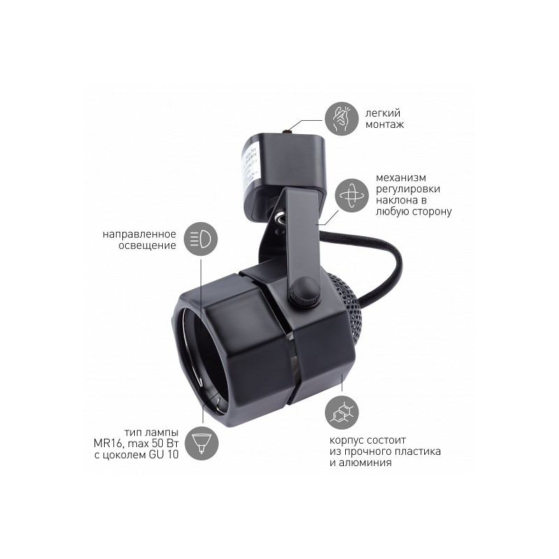 TR9-GU10 BK Трековый светильник однофазный ЭРА TR9-GU10 BK под лампу MR16 черный