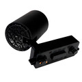 Прожектор оснащен фокусирующей световой поток сотовой решеткой. Трековые прожекторы крепятся на шинопровод (трек) с помощью встраиваемой системы крепления (адаптеров) и являются источником направленного света. Конструкция трековой системы обеспечивает перемещение прожекторов вдоль трека, что позволяет изменять направление света и уровень освещенности различных зон. Корпус прожектора вращается вокруг вертикальной оси на 360° и на 90° вокруг горизонтальной оси. Соединение треков в линию производится с помощью коннекторов (прямых, угловых, T-образных, X-образных, гибких). Трек, коннекторы и стационарные крепления в комплект поставки не входят.