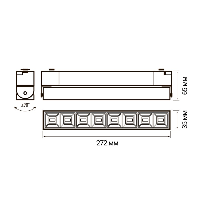 Прожектор имеет мгновенное включение, высокую цветопередачу, устойчив к климатическим воздействиям. Корпус прожектора, который легко установить в любой точке шинопровода (трека), позволяет создавать зоны с мягким рассеяным освещением. Хорошее отведение тепла обеспечивает долгую стабильную работу прожекторов. Простота и удобство в монтаже. Особенности: Трековые прожекторы крепятся на шинопровод (трек) с помощью встраиваемой системы крепления (адаптеров). Конструкция трековой системы обеспечивает перемещение прожекторов вдоль трека, что позволяет изменять уровень освещенности различных зон. Корпус прожектора вращается вокруг продольной оси на ±90°.