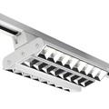 Трековые прожекторы крепятся на шинопровод (трек) с помощью встраиваемой системы крепления (адаптеров) и являются источником направленного света. Конструкция трековой системы обеспечивает перемещение прожекторов вдоль трека, что позволяет изменять направление света и уровень освещенности различных зон. Светодиодные модули вращаются вокруг горизонтальной оси независимо друг от друга. Угол поворота боковых модулей 180°/30°, угол поворота центрального модуля ±30°. Соединение треков в линию производится с помощью коннекторов (прямых, угловых, T-образных, X-образных, гибких). Трек, коннекторы и стационарные крепления в комплект поставки не входят.