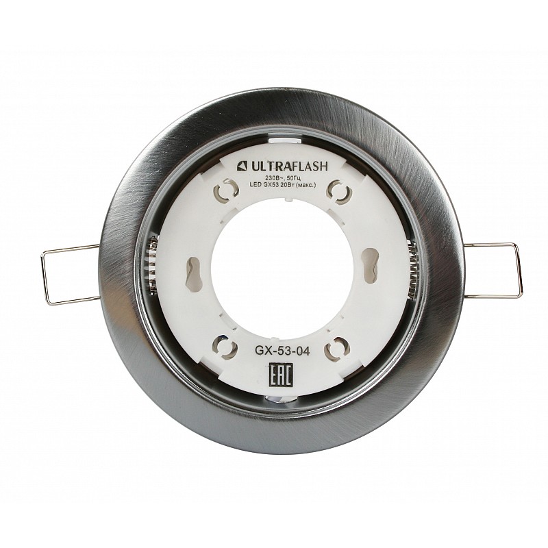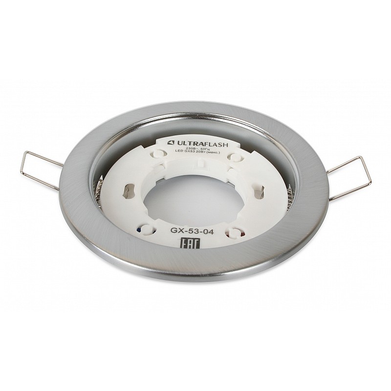 Встраиваемые светильники предназначены для монтажа в подвесные и натяжные потолки, мебель и другие конструкции. Светильник имеет клеммы на пружинах для крепления к поверхности. Ultraflash GX-53-04 матовый хром, размер 21х106х84мм, источник света - лампа GX53, патрон - GX53, материал металл+пластик, мощность до 20 Вт, ~230 В, 50 Гц.