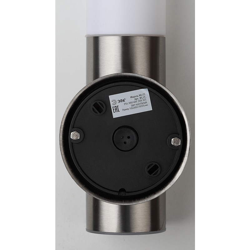 <p>Светильник декоративный настенный WL17 создает интересные световые композиции, подчеркивает структуру материалов. Подходит для наружного уличного освещения и влажных помещений. Цоколь для источника света E27, напряжение питания 220В ~50/60Гц, материал нержавеющая сталь + пластик, цвет светильника хром/белый, размер 150*360*118 мм, D76 мм, максимальная мощность лампы 50 Вт, степень защиты IP44</p>